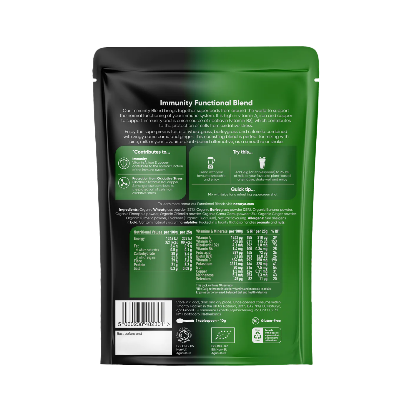 - Ideální pro Ranní Nápoje: Přidejte směs do vaší šťávy nebo smoothie pro lahodný a nutričně bohatý start dne.